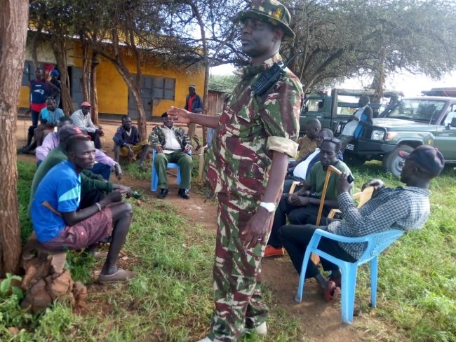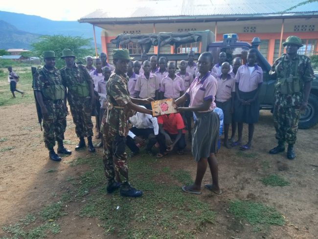 Personnel under the command of IP A. Salah participating in school award ceremony in one of the areas they restored peace in Kainuk – Turkana County